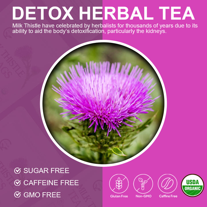Organic Milk Thistle Tea Bags, Liver Support Herbal Tea, Caffeine Free
