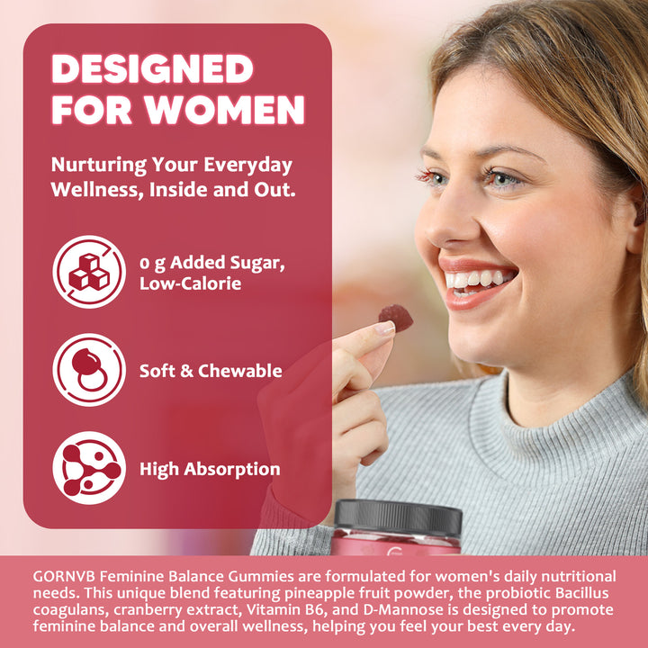 - Vaginal Probiotics Gummies: GORNVB Feminine Balance Gummies for Women are formulated with Bacillus Coagulans, a clinically recognized probiotic that supports the vaginal microbiome, blends pineapple fruit powder and Vitamin B6, offering a delicious way to support your pH balance and immune defense, helping maintain natural levels of flora, daily comfort, and freshness, to feel confident every day
