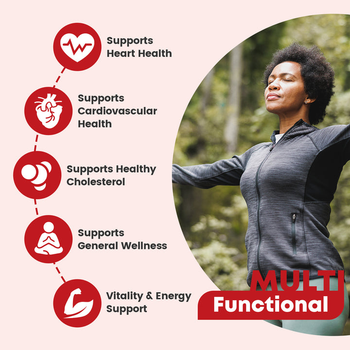 Red Yeast Rice has been used traditionally in Asian cultures, while CoQ10 is a vital antioxidant that supports cellular energy production