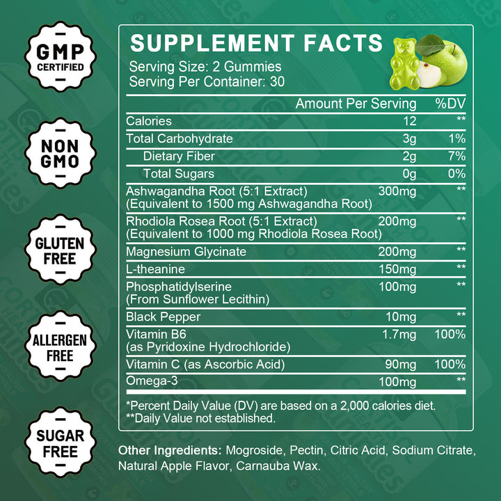 Sugar-Free Cortisol Gummies - 9-in-1 Stress & Sleep Support with Ashwagandha, Magnesium & Rhodiola